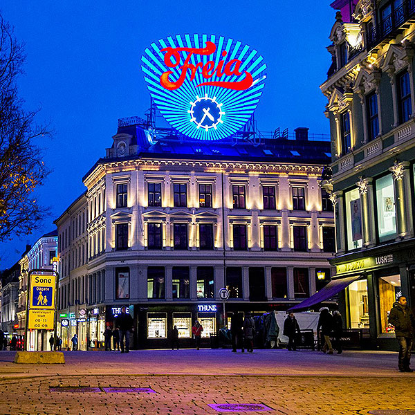 Freia Building Neon Clock – Advertising Timepiece in Oslo City Center
