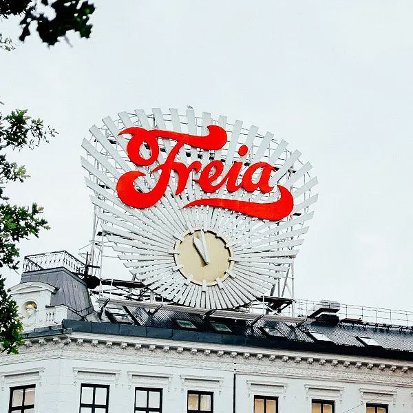 Freia Rooftop Clock in Oslo – Architectural Advertising Clock Example