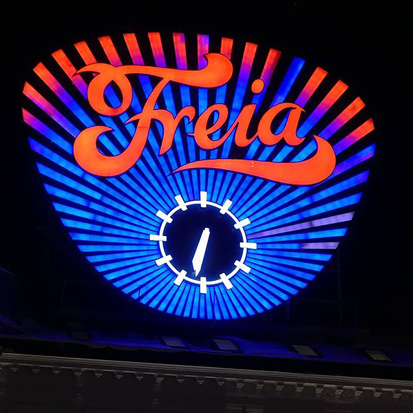 Freia Building Neon Clock – Advertising Timepiece in Oslo City Center