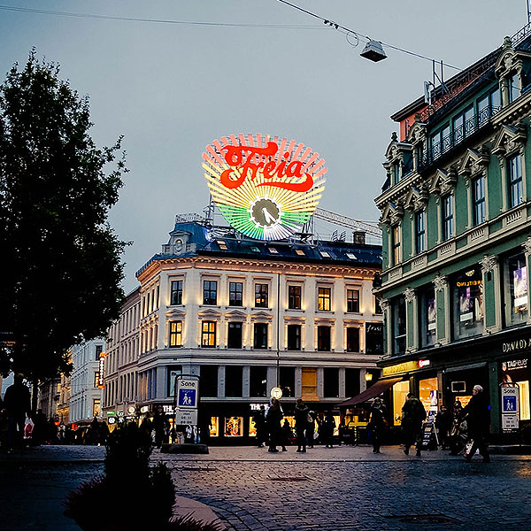 Commercial Brand Clock in Oslo – Freia Signage Clock on Karl Johans Gate